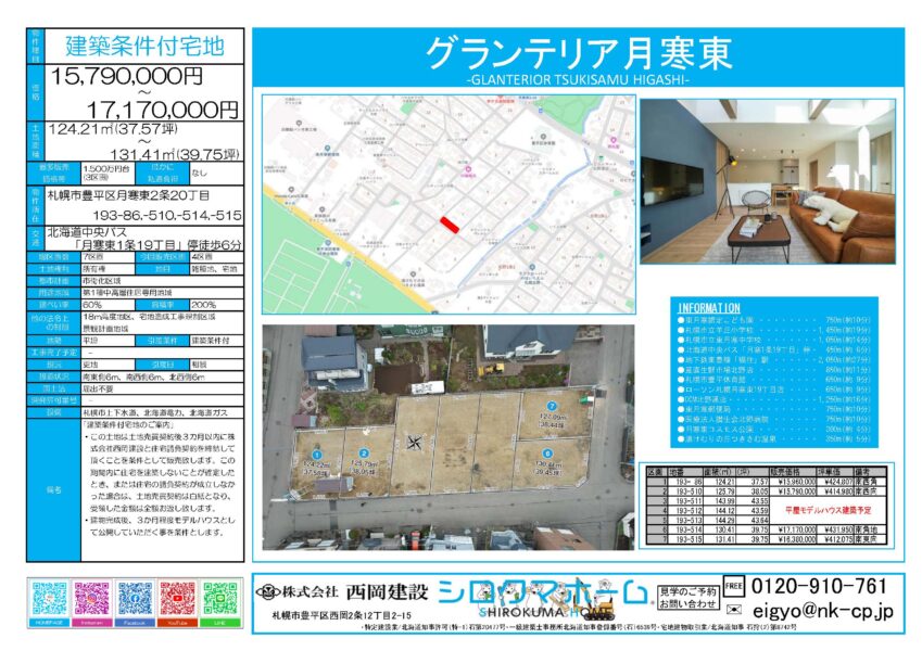 札幌の大動脈である国道36号線から一本中に入った住宅街。 バス路線でありながら、市内でも有数の便数が往来し、 地下鉄感覚での利用が可能と非常に利便性が高く、 近郊に教育・文化・娯楽施設を有し、魅力的な月寒東エリア
